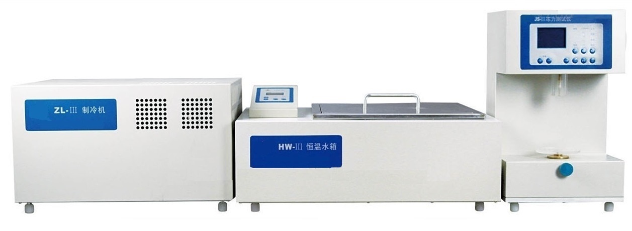 系統組成:◎JS-II凍力儀主機1臺 ◎HW-Ⅲ精密恒溫監控冷水箱1臺 ◎ZL-Ⅲ高效制冷機1臺