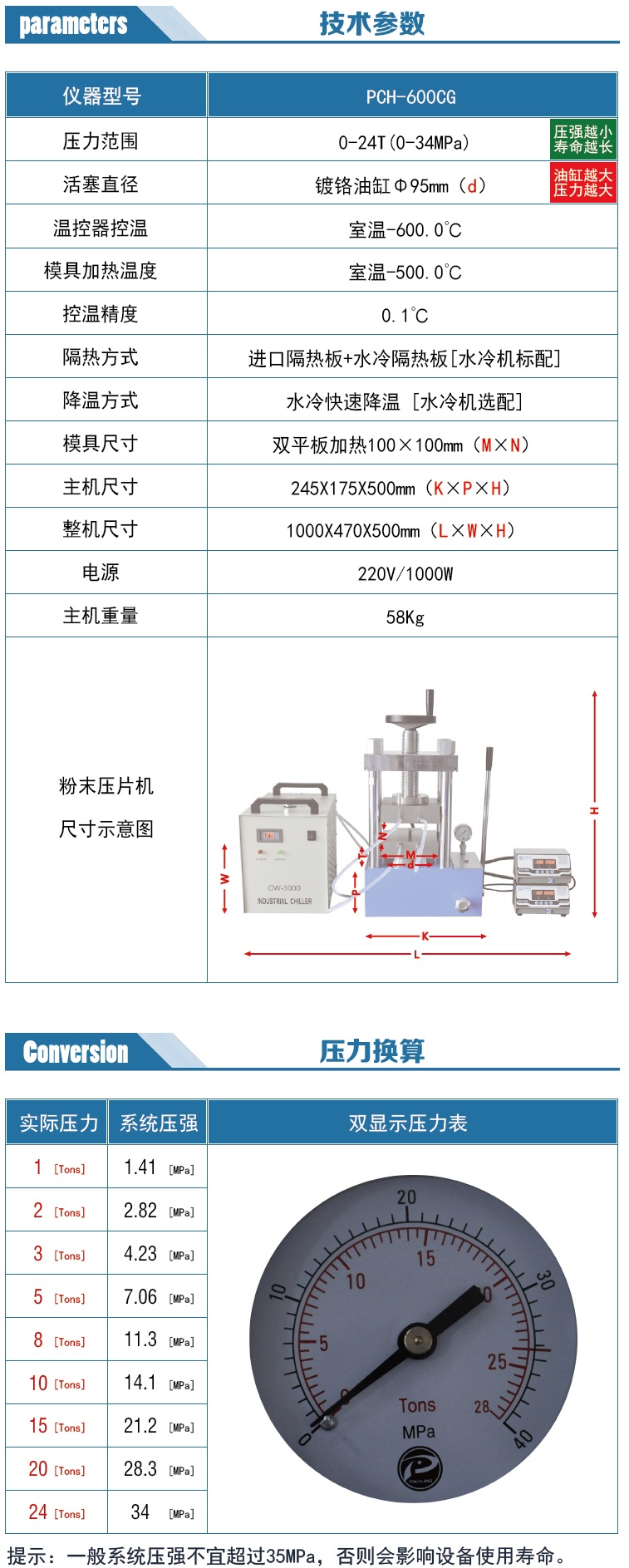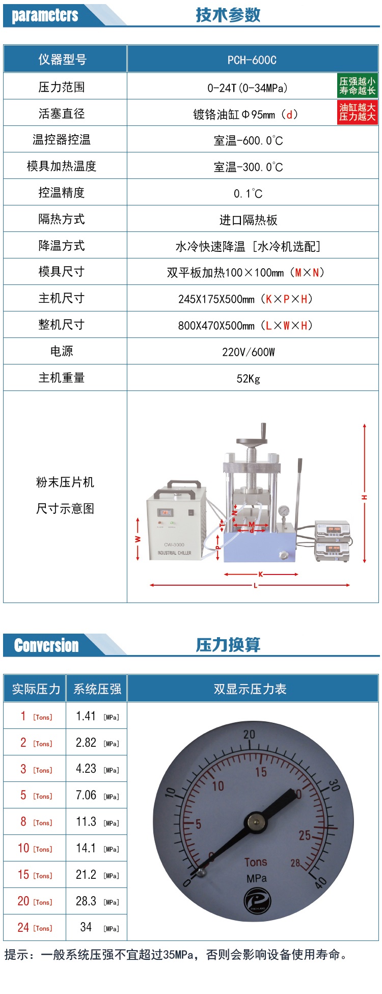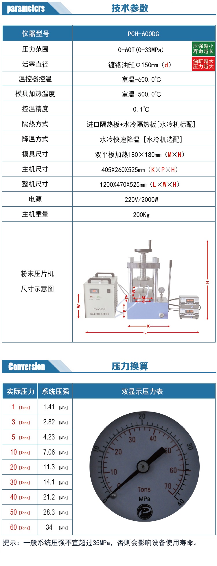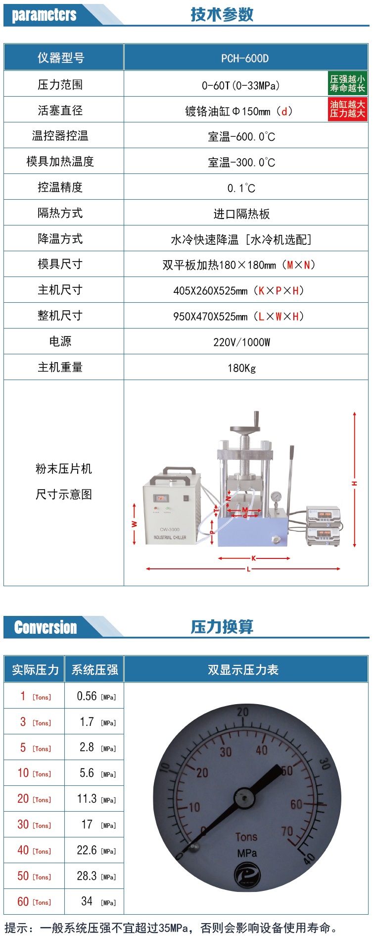 根據(jù)平板面積 規(guī)格PCH-600D  可選 30T 200MM寬;60T 180MM寬